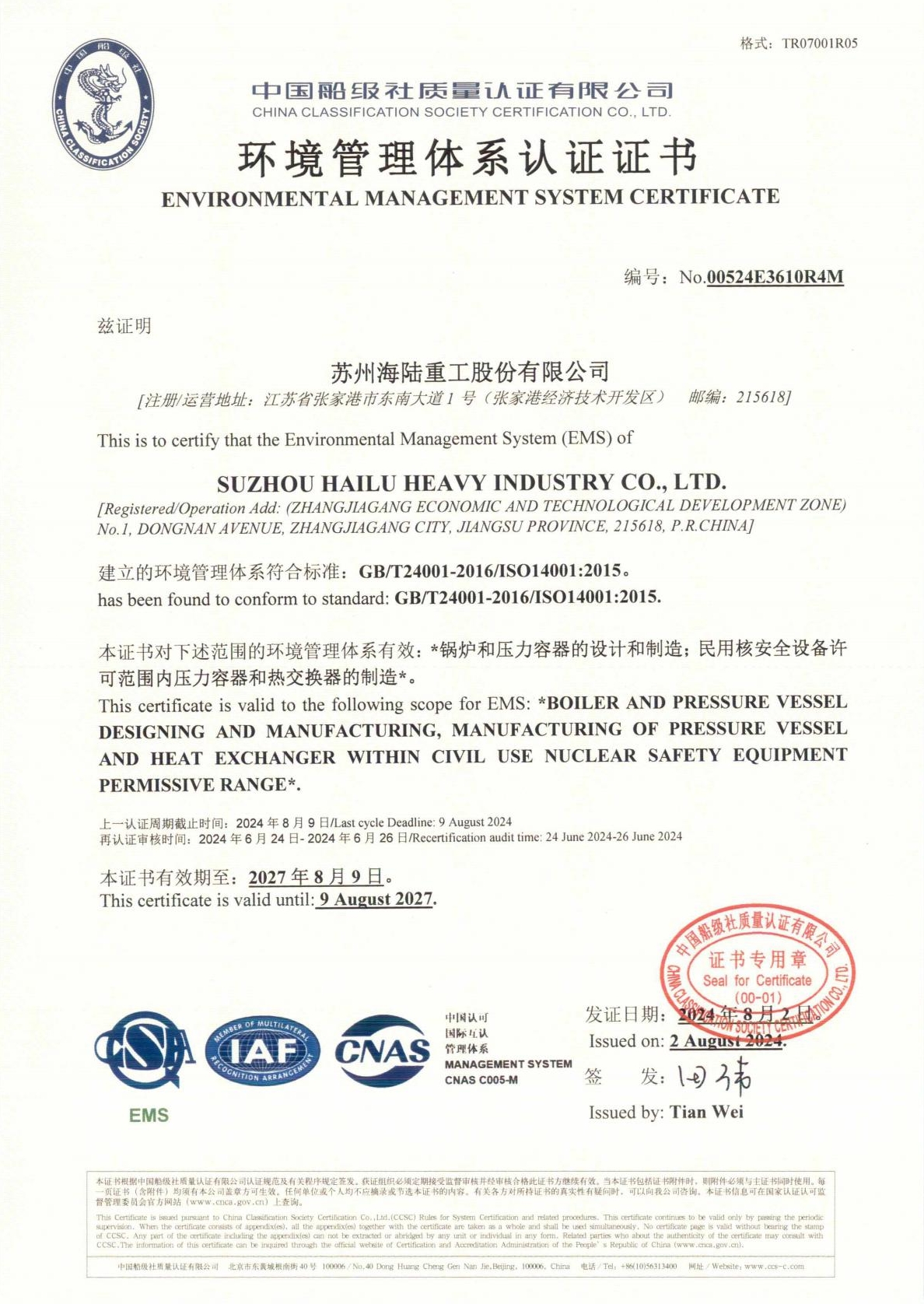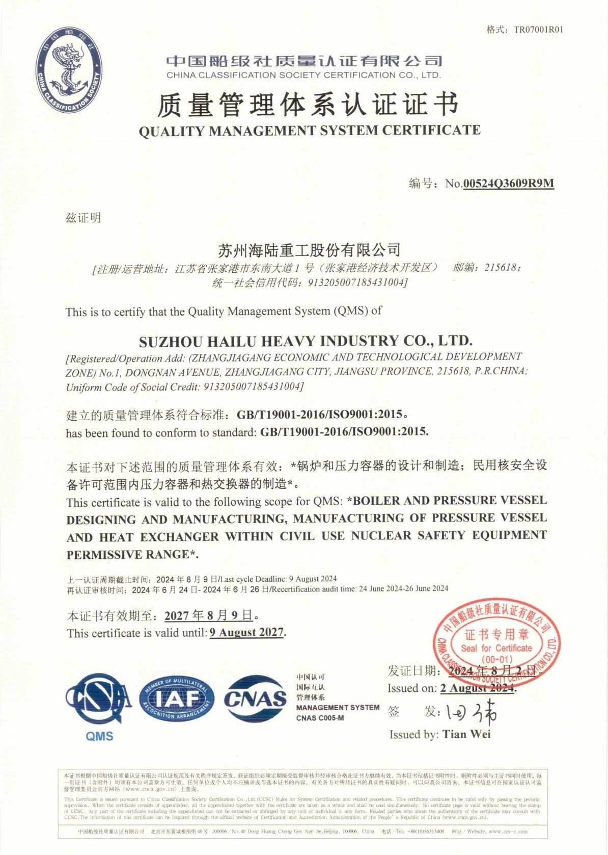 Suzhou Hailu Heavy Industry Co., Ltd. is located in Zhangjiagang Economic and Technological Development Zone, Jiangsu Province. It is a professional design and manufacturing enterprise engaged in first-class energy-saving and environmental protection equipment in China. At present, it has formed a business layout covering boilers, pressure vessels, nuclear power equipment, low-temperature products, environmental protection engineering and photovoltaic new energy. Among them, the waste heat boiler products under the "Hailu" brand serve more than 30 industries including shipbuilding, petroleum, chemical industry, mining, metallurgy, electric power, papermaking, printing and dyeing, glass and non-ferrous metals, and are exported to more than 80 countries and regions, boasting over 500 users worldwide.